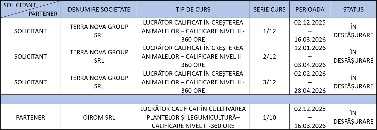 - 12 serii x 14 pers – „Lucrator calificat in cresterea animalelor”- nivel II -360 ore
